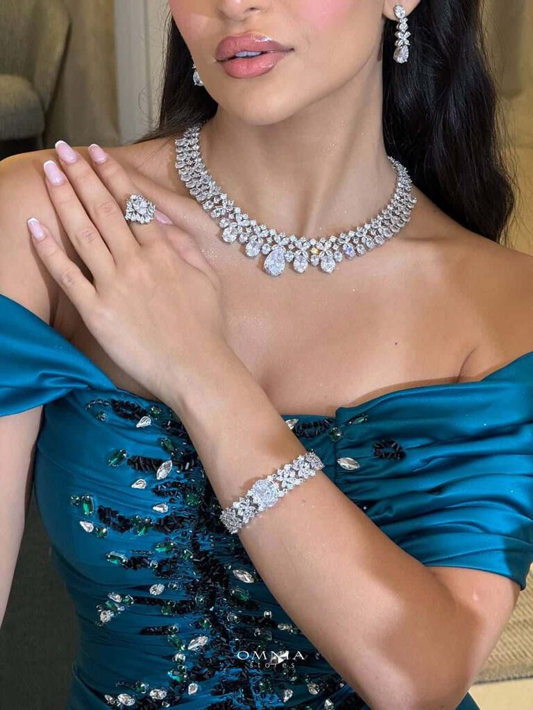 Omnia Marwa Blue Bridal Full Set in High Quality Zircon Stone Rhodium Plated