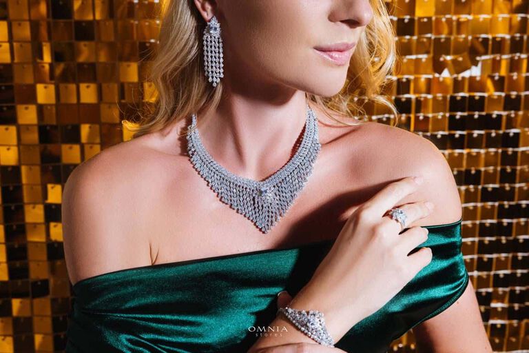 Omnia Kaila White Luxury Bridal Full Set in High Quality Zircon Stone in Rhodium Plated